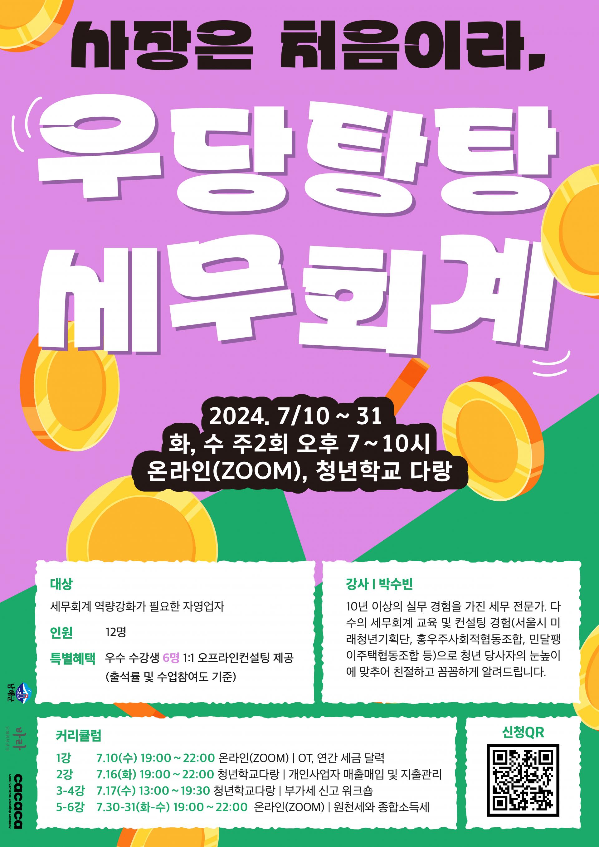 카카카친구들은 남해청년센터와 함께 청년역량강화교육 <우당탕탕 세무회계>를 진행했습니다. 해당 커리큘럼은 '남해 청년들의 사업역량강화를 통해 살기 좋은 지역생활의 발판 만들기'를 목표로 기획하였습니다. 탄탄한 실무 경력을 바탕으로 청년의 눈높이에서 A부터 Z까지 꼼꼼히 짚어줄 역량있는 선생님을 모셨고, 온라인과 오프라인을 병행하며 수업을 진행했습니다. 세무 교육은 어려운 용어가 많고 신고 등의 흐름도 복잡하여 세심한 운영이 필수적이었습니다. 수업 전 매 강의마다 당해년도 업데이트를 반영한 첨부자료를 충분히 제공했습니다. 특히, 온라인 질의응답 페이지를 개설해 수업 중 나온 질문들을 모으고 수업 이후에 '관련있는 내용이라면 물어보지 않은 것까지' 충분히 답변을 제공하며 참가자들의 궁금증을 해결하기 위해 노력했습니다. 커리큘럼 기획 당시부터 '부가세 신고 기간'을 활용해, 수업 중에 참가자가 '직접' 부가세를 신고할 수 있도록 준비했습니다. 참가자들은 프로그램 만족도평가에 4.9점(5점 만점)으로 응답했습니다.